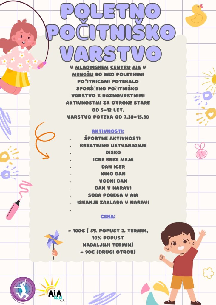 Poletno počitniško varstvo poteka pod okriljem društva AIA, izvaja pa ga Moveo s.p.