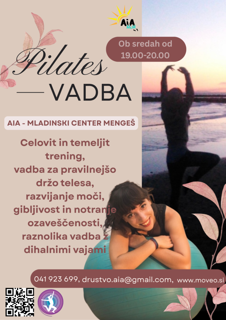 Mesečna vadnina pilates mladi do 29 let (člani AIA): 15€ + 10€ letna članarina