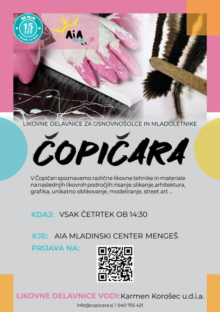 Vpis na likovne delavnice Čopičara priporočamo otrokom in mladostnikom, ki želijo svoj čas preživeti v likovno ustvarjalnem okolju ter v družbi kreativnih.